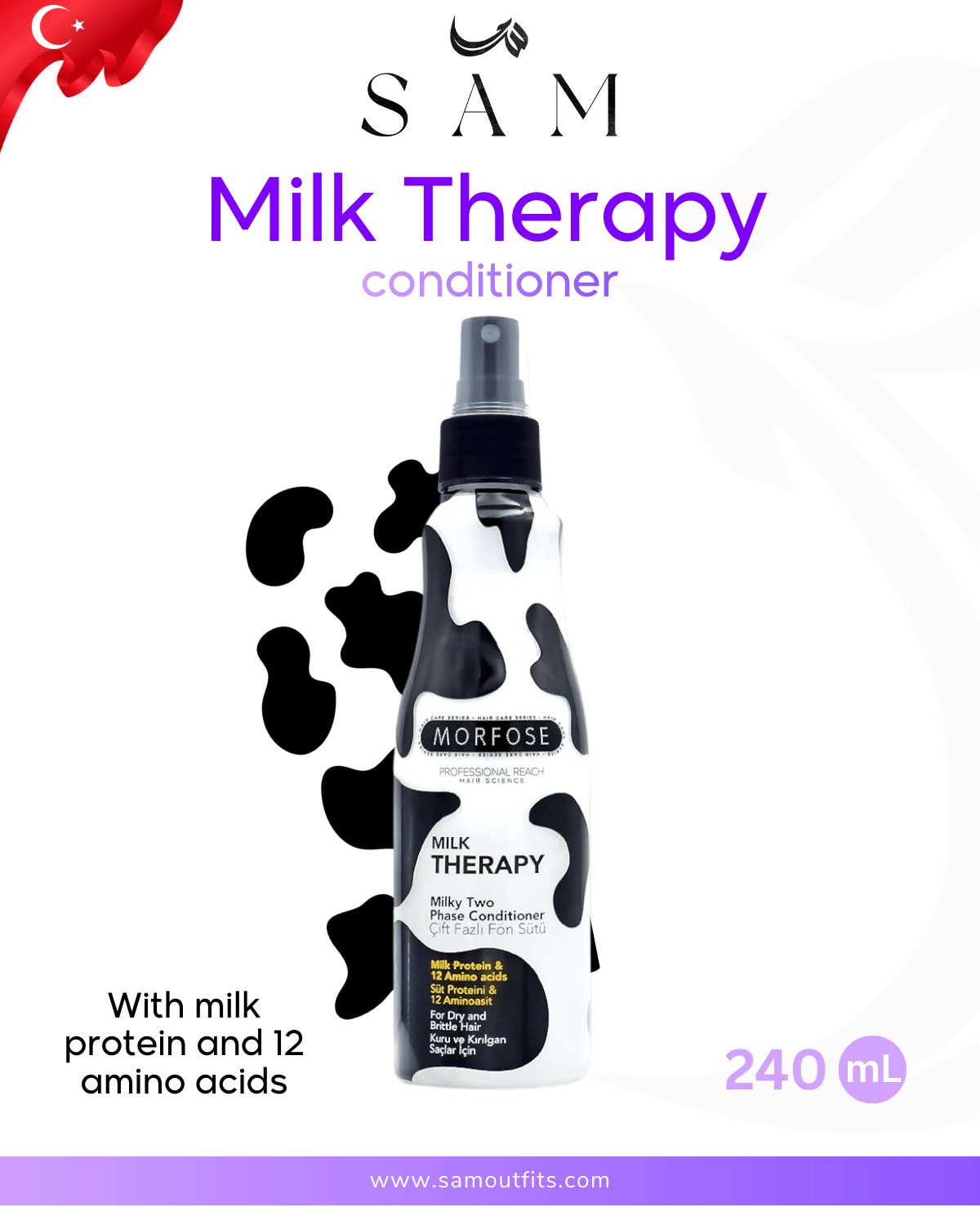 With vanilla scent and almond oil. Without silicone. For stressed and damaged hair. 300ml